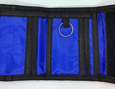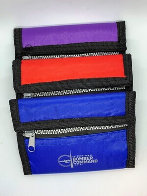 Great wallet for use by child or adult. Featuring Zip pocket on the front and several pockets and card slots inside.