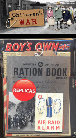 Children’s War memorabilia pack is a collection of high quality reproduced paper memorabilia from World War 2. The contents are all related to a childrens experience of the War and it makes an excellent educational aid. It’s packaged in a clear bag with header card.