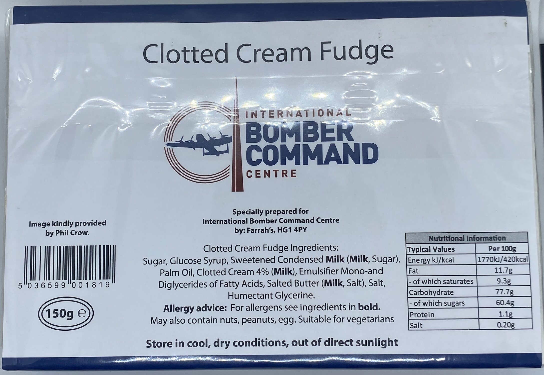 Clotted Cream Fudge. May contain nuts, peanuts, egg. Suitable for vegetarians. Store in cool, dry conditions, out of direct sunlight.