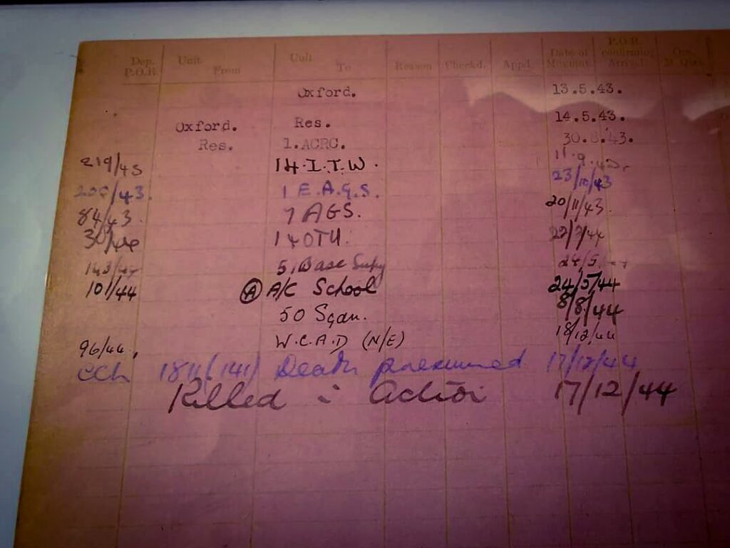 22nd February 1944 – no 14 operational training unit, where he would have joined his crew and learned how to fly together