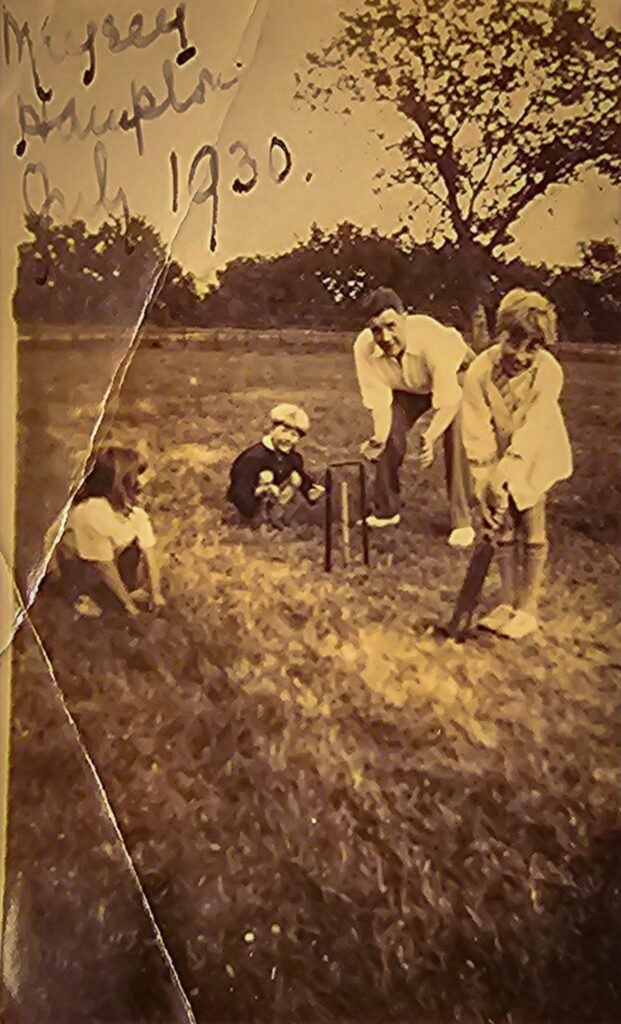 I took with me a photo of my Grampy and Michael playing cricket as young boys in Meysey Hampton in July 1930 (see below image, with Grampy batting and Michael as wicket keeper).