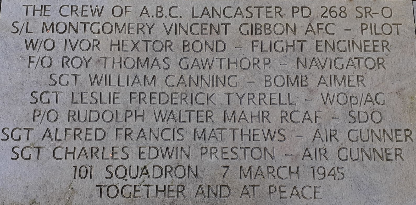 On the 7th March 1945 at 1708hrs, Lancaster PD268 of 101 Squadron lifted off from RAF Ludford Magna in the Lincolnshire Wolds. A total of 23 Lancasters would depart Ludford Magna that evening to support the raid. The target was the Junker’s Aircraft Factory at Dessau and they were part of a large bomber stream consisting of 526 Lancasters and 5 Mosquitoes. 18 Lancasters, which was 3.4 Percent of the force failed to return, including the crew of PD268. They were the only crew not to return safely to Ludford Magna in the early hours of the following morning, nothing was heard from them after taking off.