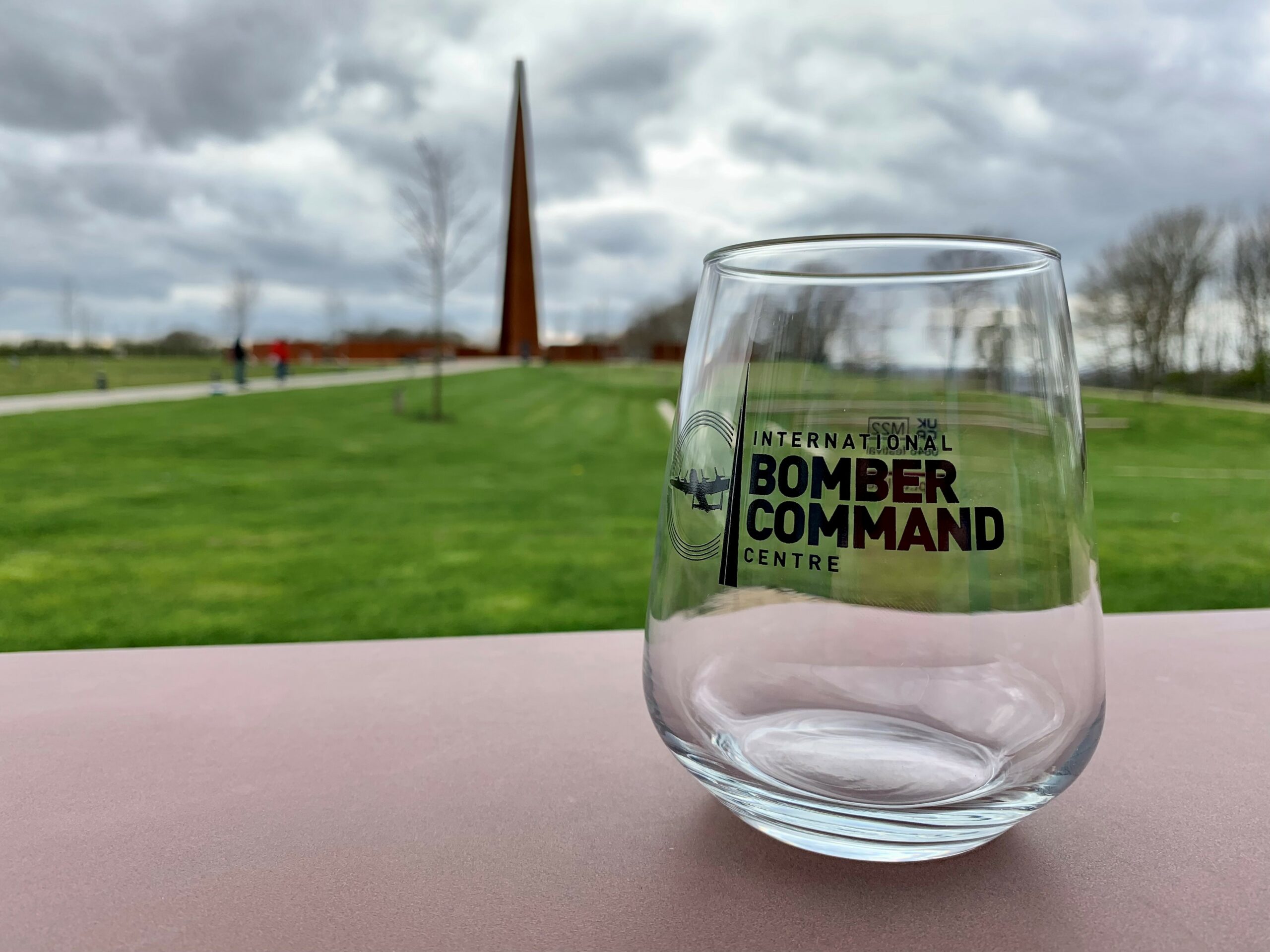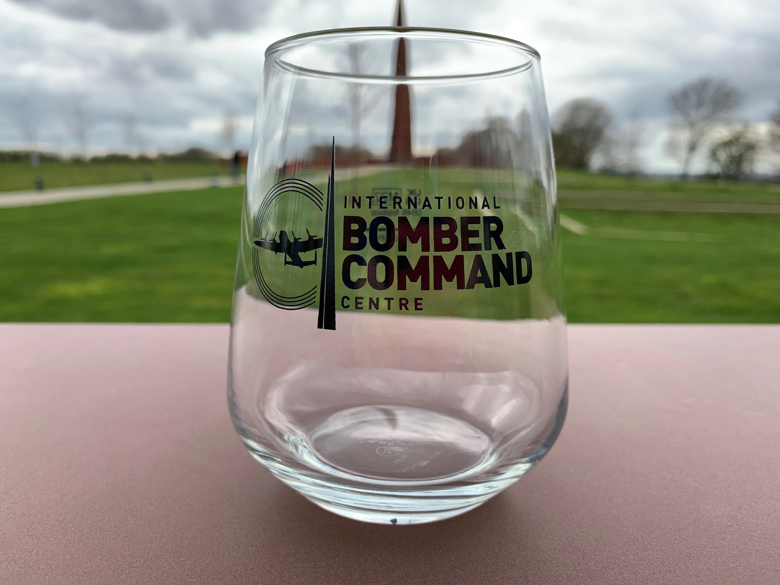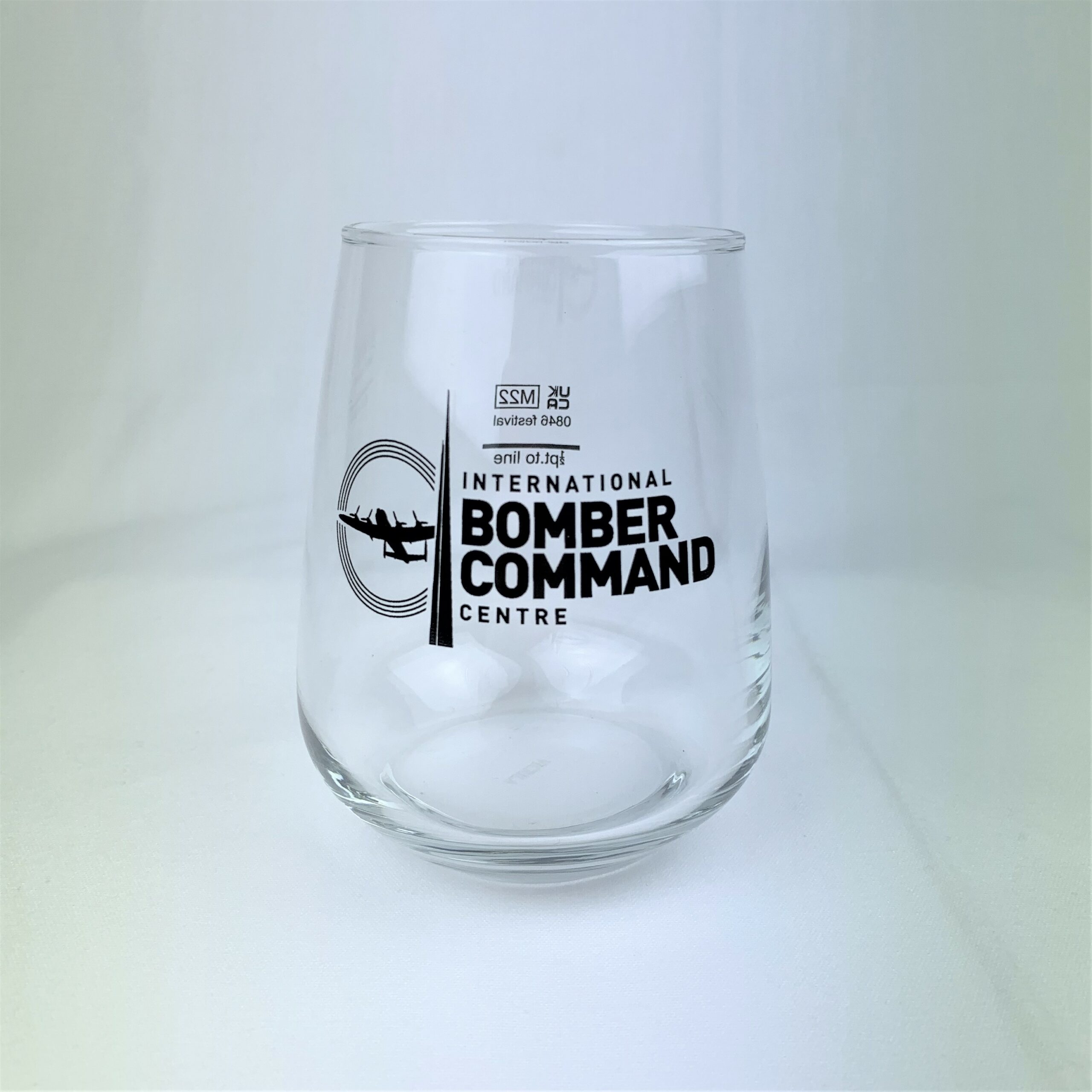 Clear glass tumbler, with black IBCC logo on side