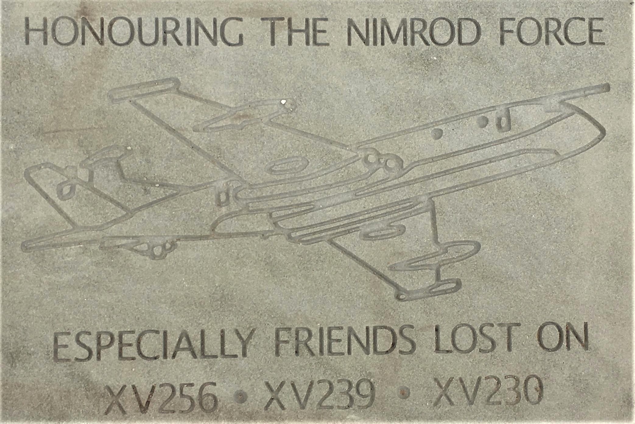 The Nimrod Ribbon Of Remembrance stone has been placed at the IBCC to honour all those who served in the Nimrod Force, (Aircrew, Groundcrew & Support Staff), during the Nimrod’s time in Service, which spanned over forty years. It especially honours those friends and colleagues lost in three tragic accidents, which befell the Nimrod Force.