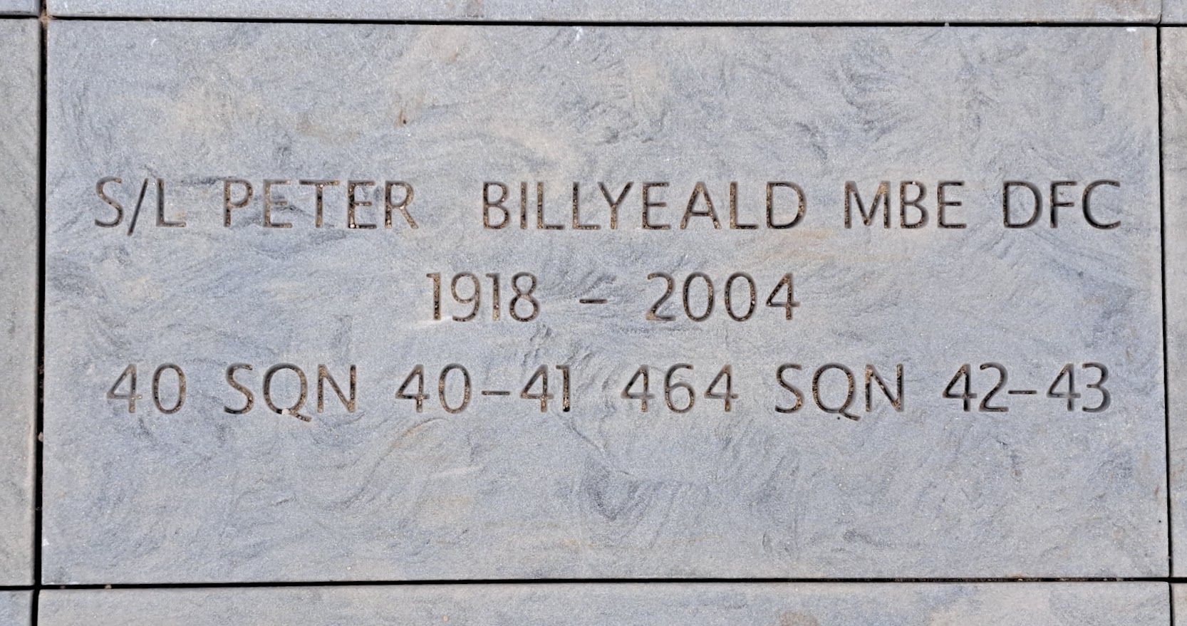 “Squadron Leader Billyeald is an outstanding officer who has completed numerous operational missions, most of them as flight commander. He has invariably displayed keenness, determination and leadership of an exceptional nature. His earlier operational experience, which extended over a long period, has contributed much to the efficiency and spirit of his present squadron. His example both on the ground and in the air has been most praiseworthy.”