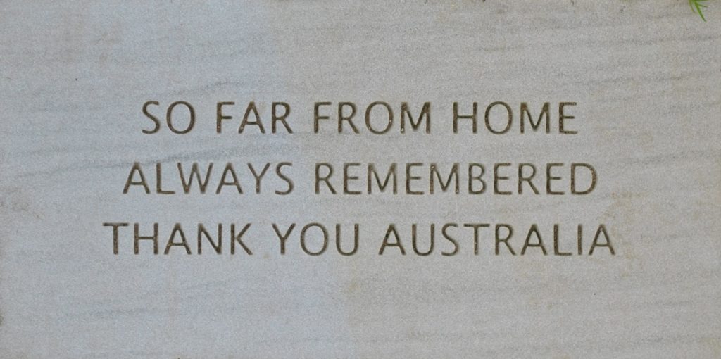 At the very end of the path that leads to the Memorial Walls, on the left hand side, there is a large Stone dedicated to all the Australian Air Force members who served in Bomber Command during WW2. Australian aircrew were trained in Australia, Canada and Rhodesia under the Empire Air Training Scheme (EATS), before they arrived in the UK to serve in Bomber Command. The first ground instruction and flying schools opened in Australia in 1940 and by March 1941 the graduates were joining the UK based Squadrons.