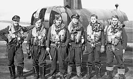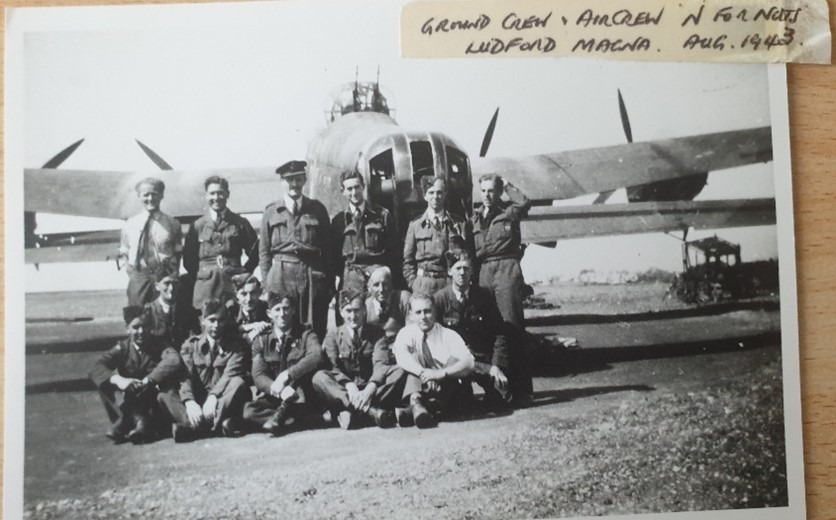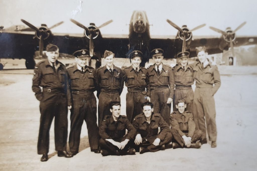 Of the 6 unknowns, I believe 2 are ground crew and the four other flying crew are “P A Moore” (bomb aimer); “F Meller” (air gunner); “J H Moore” (air gunner); “L W Ley” (Flight Engineer)