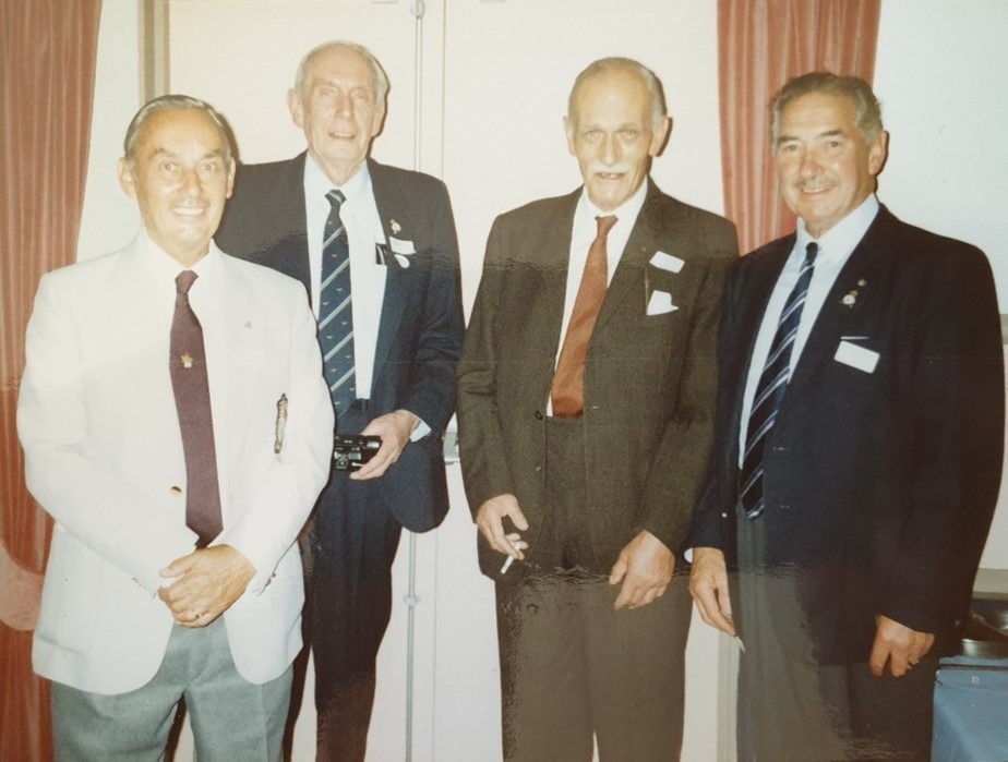 Reunion around the 1980s – from l to r: Dad, Sandy Greig, Scrym, unknown