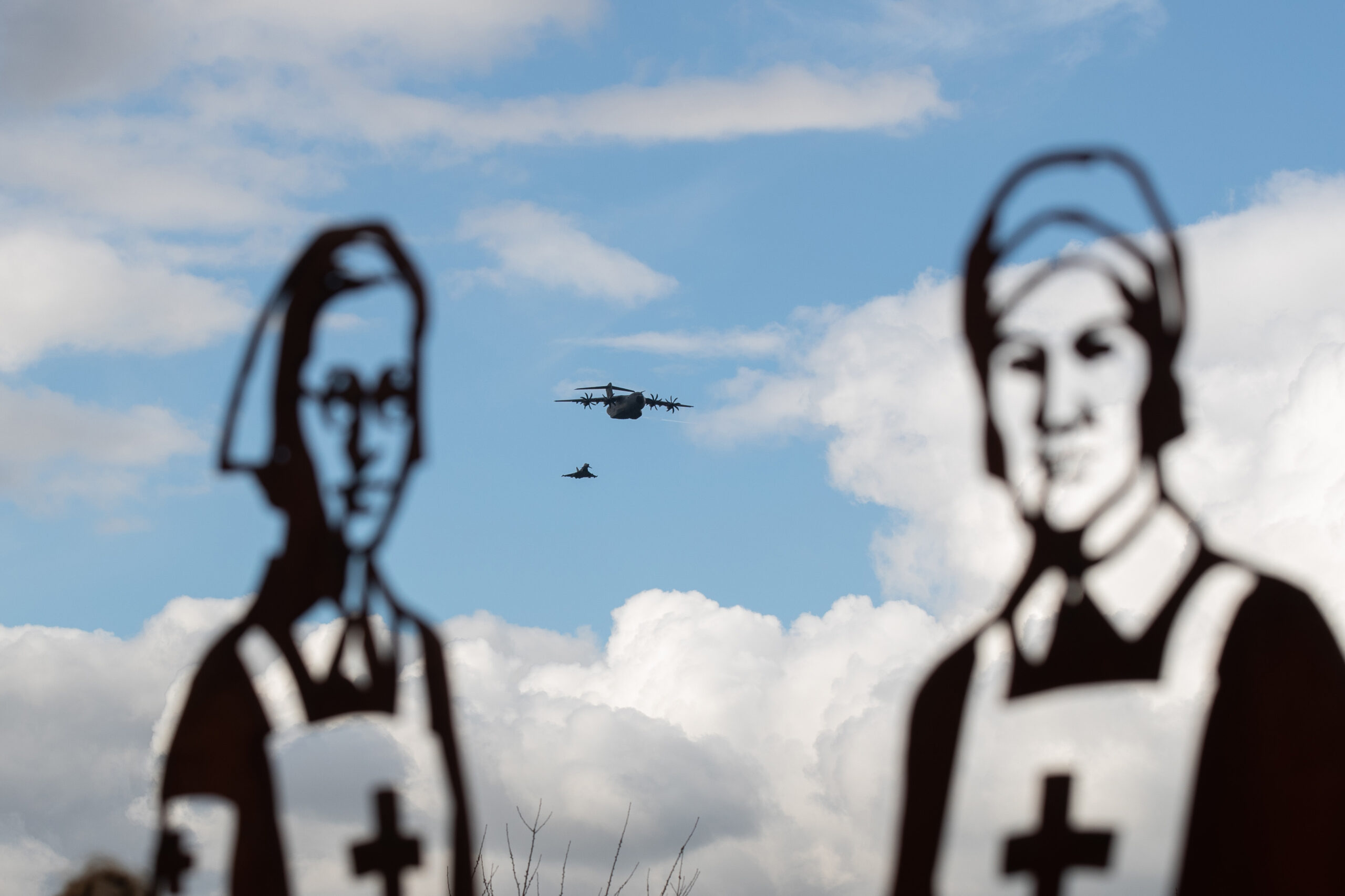 On the 14th March 10 8ft silhouettes of Women In War were unveiled in a ceremony that saw 18 “modern giants”, women in senior roles across many sectors, cutting the ribbons. They were treated to the RAF’s first all-female flypast including a Prefect from 57 Squadron at RAF Cranwell, a Typhoon from 11 Squadron based at RAF Coningsby and an Atlas from 206 Squadron at RAF Brize Norton.